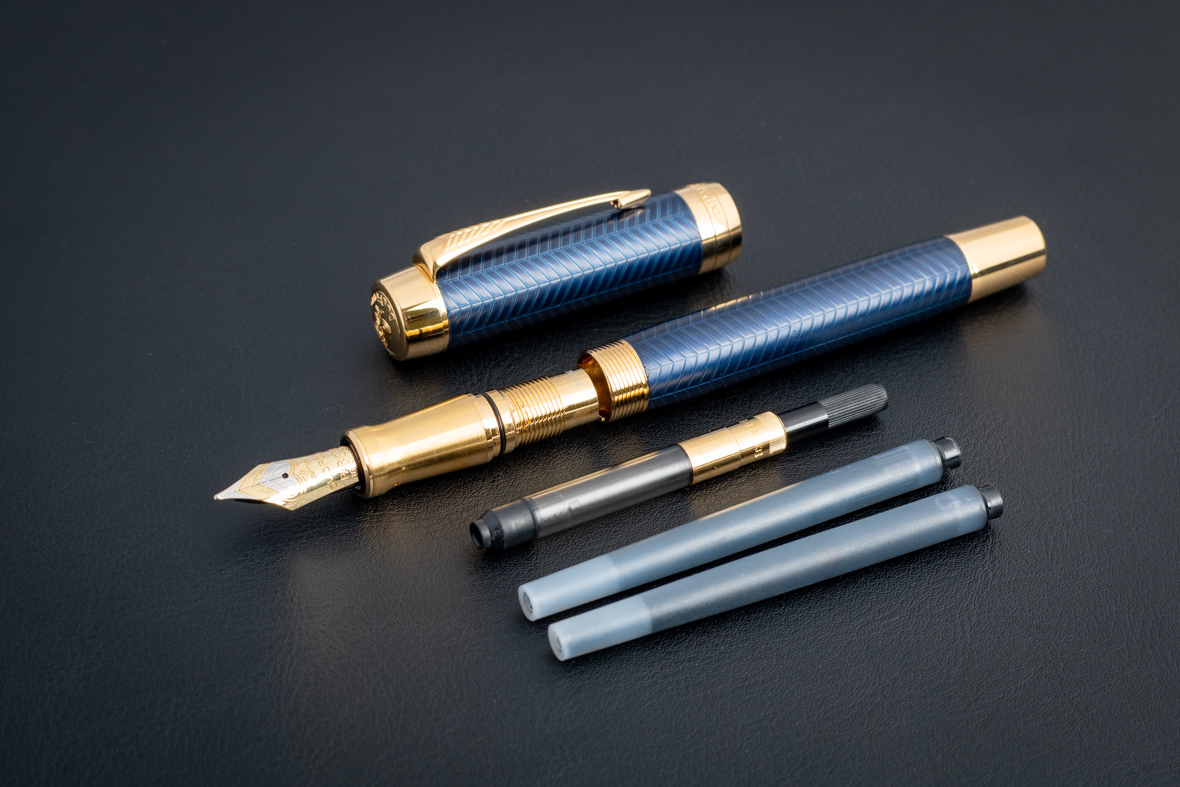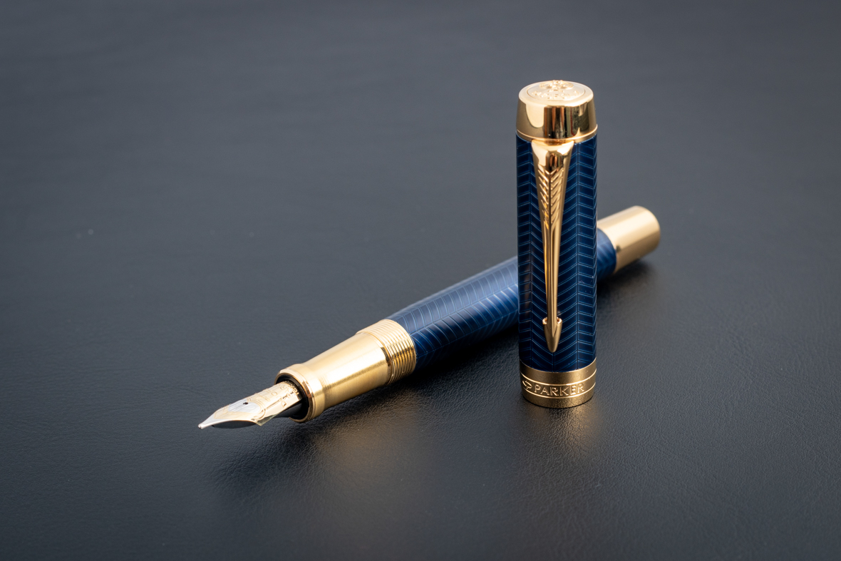 Перьевая ручка Parker Duofold Prestige Centennial Blue Chevron GT (M) от официального дилера Parker в Домодедово. Вы можете дополнительно заказать гравировку, которая подчеркнет Вашу оригинальность и придаст памятность статусному подарку. Все ручки Паркер поставляются в фирменном футляре.